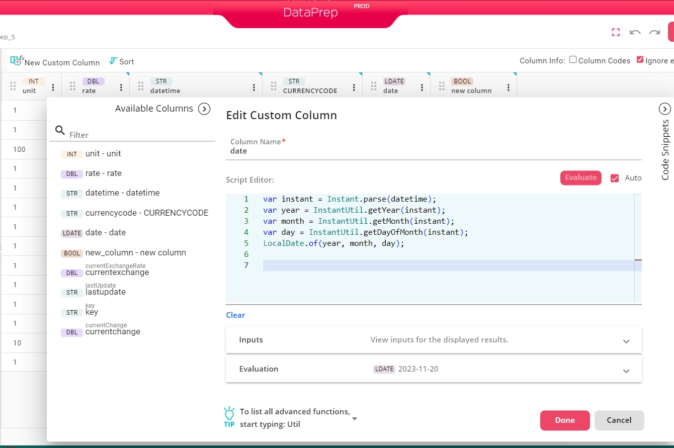 Enrich your data by inserting new calculated fields using our advanced scripting editor with autocomplete.